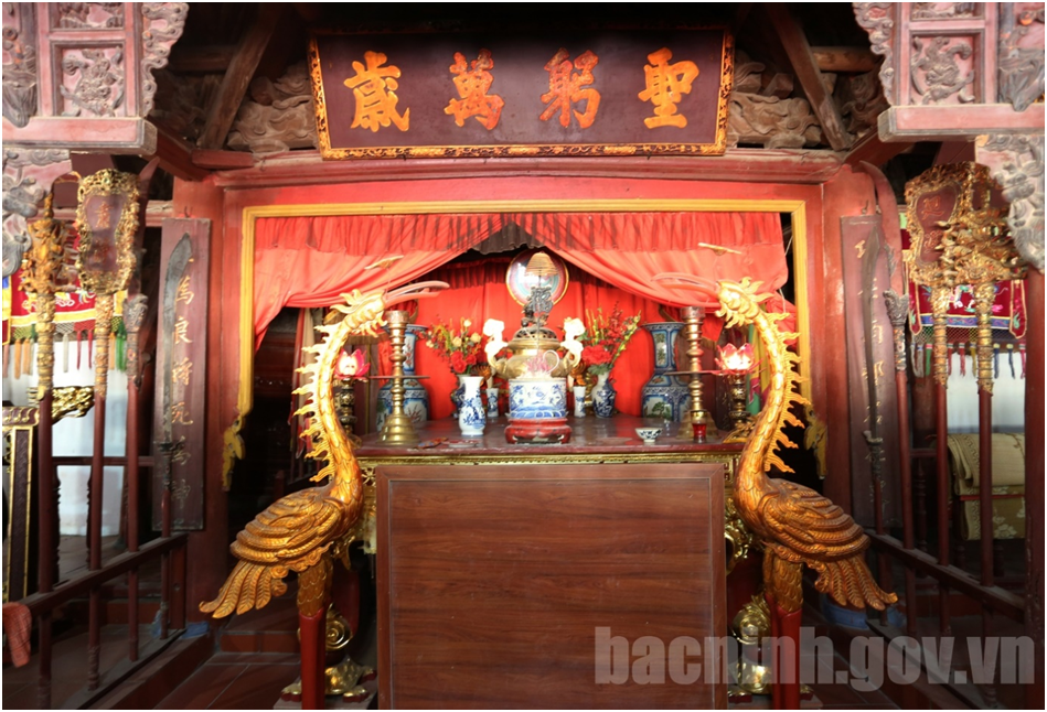 Một số đồ thờ tự có niên đại từ thời Lê - Nguyễn được bảo lưu tại đình.
