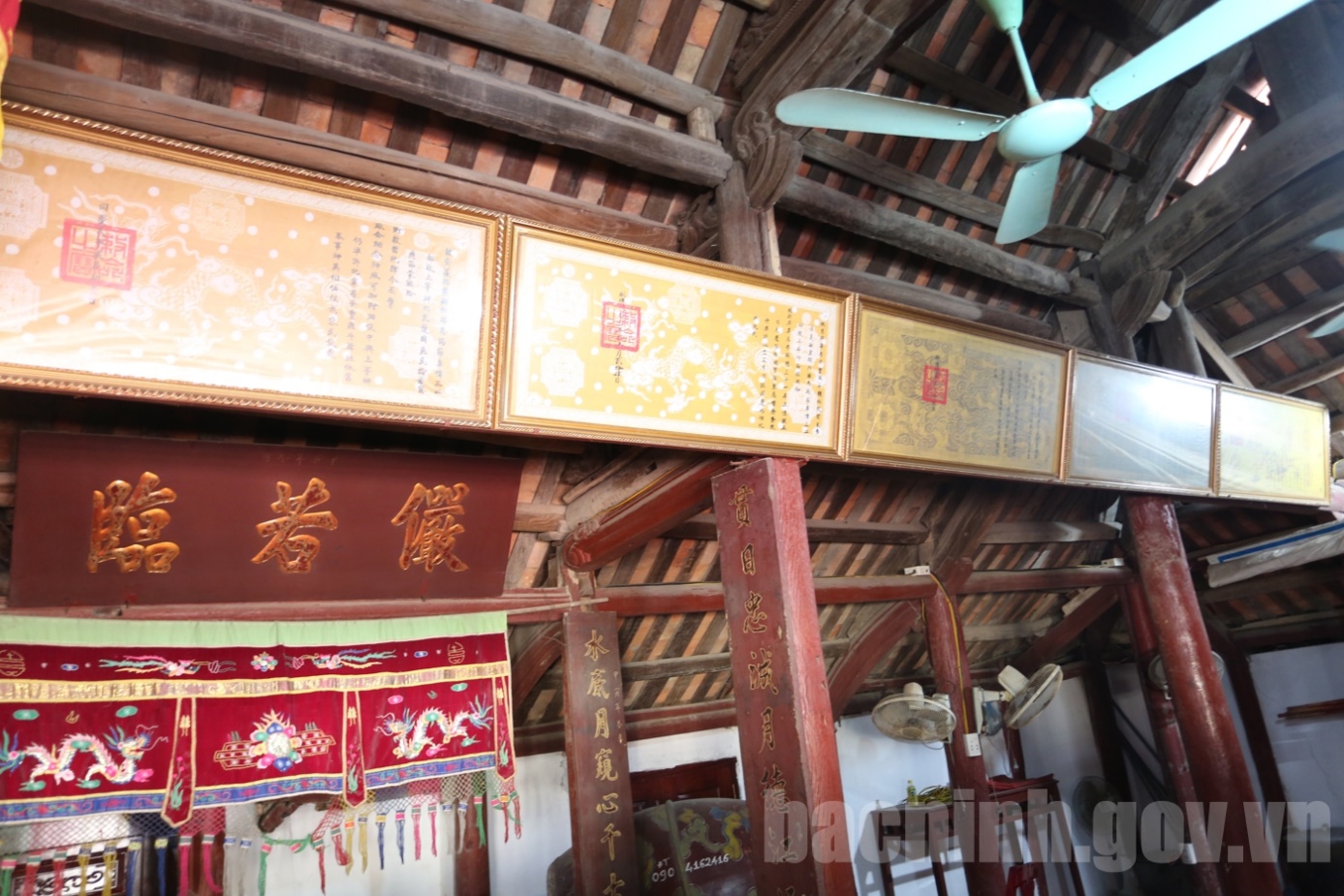 Các sắc phong được treo trong đình.