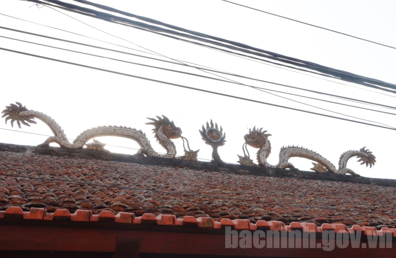 Mái đình được đắp nổi hình lưỡng long chầu nguyệt.